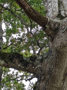 Le parking où nous nous retrouvons donne le ton du parc qui nous attend derrière la grille d’entrée du château de Couëllan. Mme Dorange nous reçoit prêt du chêne âgé de 500 ans, appelé vieux ou gros chêne qui garde une importante trace de foudre.